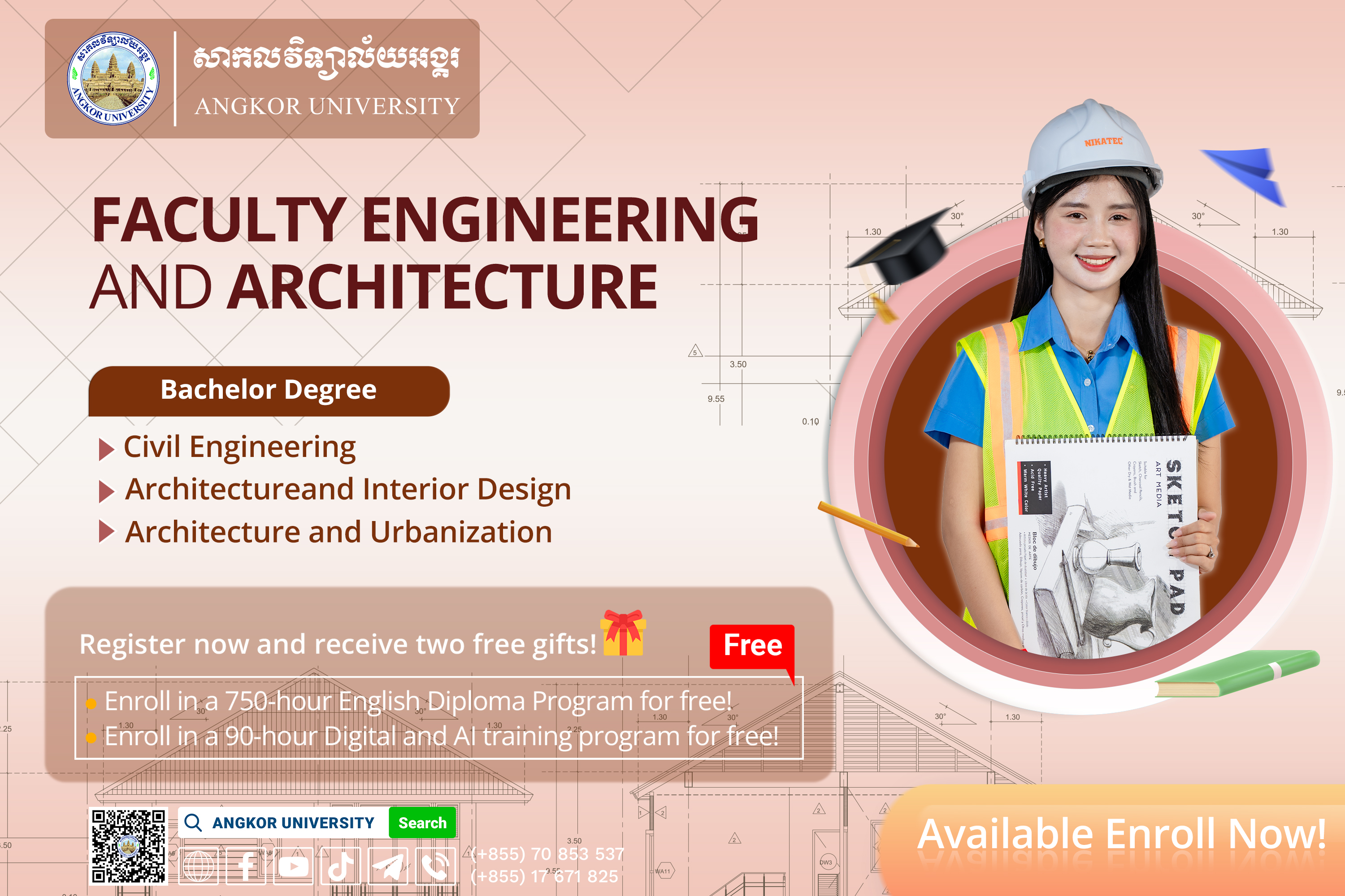 Apply NowAngkor University offers a wide range of faculties and majors designed to meet the needs of modern education and the job market. Each faculty provides high-quality academic programs that combine theory, practical skills, and innovation — helping students build strong foundations for their future careers.